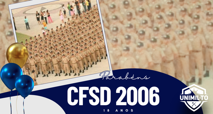 A UNIMIL-TO, União dos Militares do Tocantins, parabeniza a turma do CFSD do ano de 2006, que neste 21 de abril comemora 18 anos de corporação. Parabéns a esses nobres guerreiros que dedicam suas vidas na defesa da sociedade tocantinense.